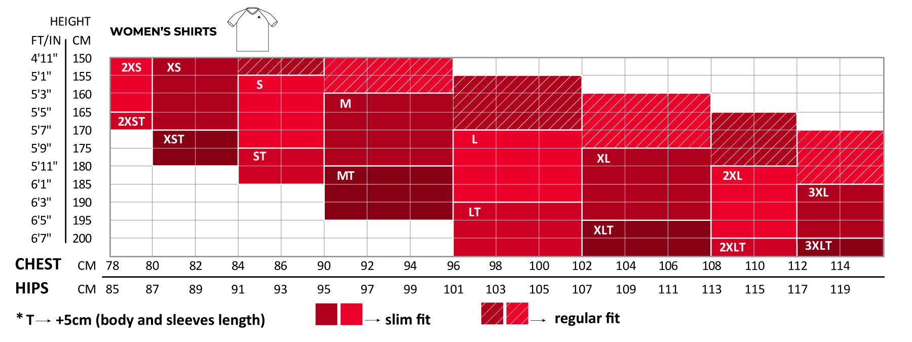 Women's shirts size guide